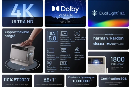 - Vidéoprojecteur hybride laser-LED Dual Light 4K UHD (3840x2160)